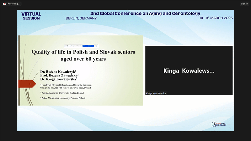 | Dr Bożena Kowalczyk | Faculty of Physical Education and Security Sciences, University of Applied Sciences in Nowy Sącz, Poland, Poland | Quality of life in Polish and Slovak seniors aged over 60 years. |
